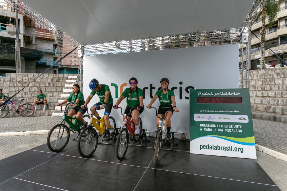 Um dos destaques da programação foi o Espaço Solidário, onde o esforço dos participantes se transformou em doações. Ao todo, foram pedalados 413 quilômetros em bicicletas estacionárias, marca que será convertida em litros de leite destinados à Secretaria de Assistência Social de Itapema.