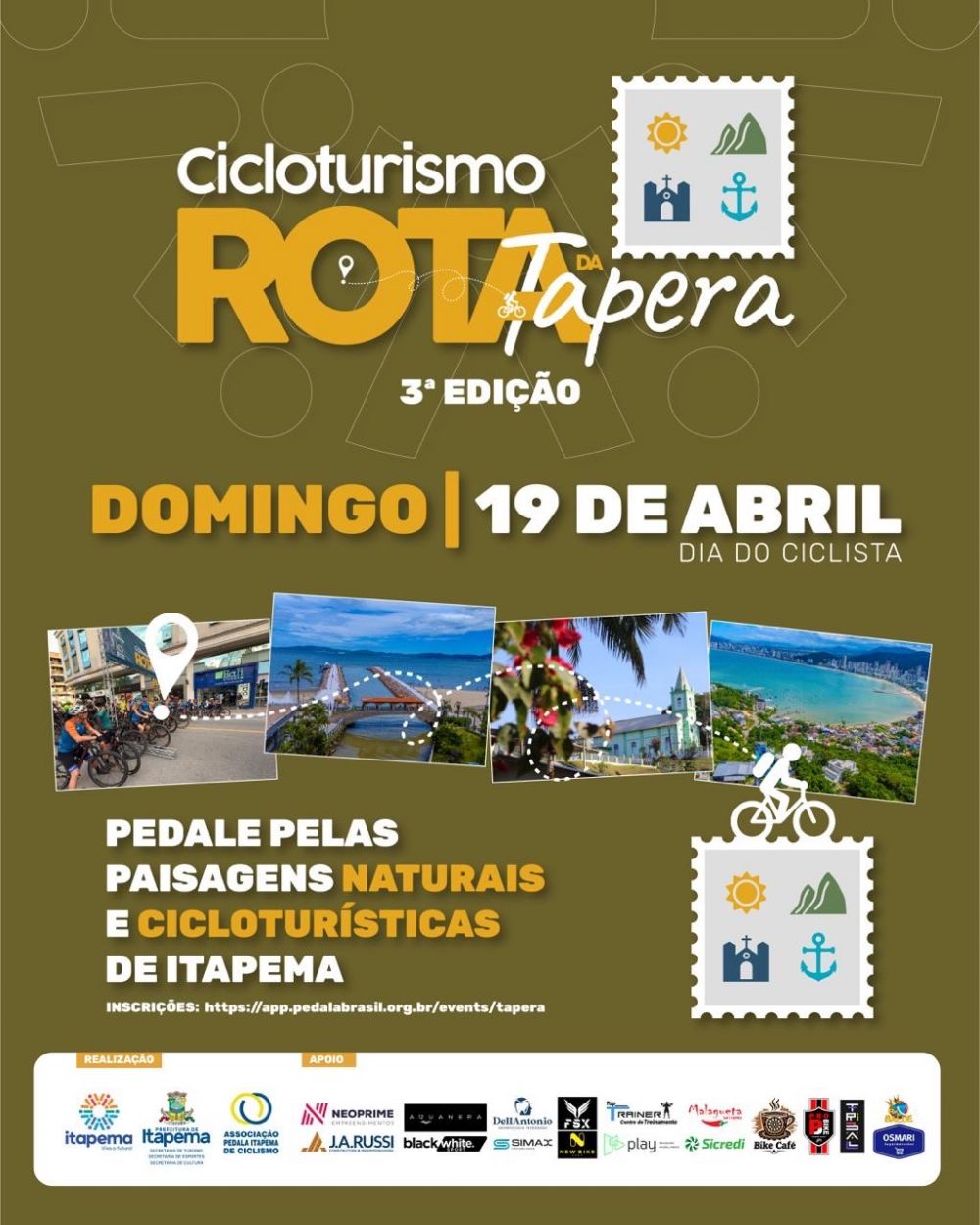 No esporte, o fim de semana também será movimentado. No dia 19, acontecem a 3ª Rota da Tapera, com saída às 7h, e o Itapema Day Run, que movimenta atletas pelas ruas da cidade.