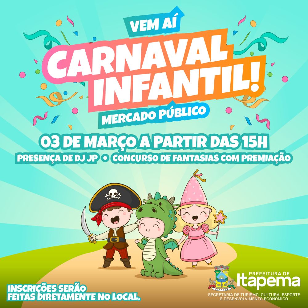 A diversão da criançada está garantida em Itapema. O tradicional carnaval infantil irá acontecer na tarde de domingo (03/03), a partir das 15h, no Mercado Público. A festa contará com a presença do DJ JP e o concurso de Fantasias com premiação, nas categorias feminino e masculino. As inscrições poderão ser feitas diretamente no local.